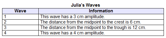 Julia performs an experiment to measure the wavelength of four different waves and records her data in the table below. Which accurately ranks the waves from the lowest energy wave to the highest energy wave? 1 → 4 → 3 → 2 2 → 3 → 4 → 1 3 → 2 → 4 → 1 1 → 4 → 2 → 3