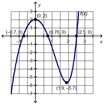 F(x) < 0 over the intervals (-∞, -0.7) and (0.76, 2.5). F(x) > 0 over the intervals (-∞, -0.7) and (0.76, 2.5). F(x) < 0 over the intervals (-0.7, 0.76) and (2.5, ∞). F(x) > 0 over the intervals (-0.7, 0.76) and (0.76, ∞).