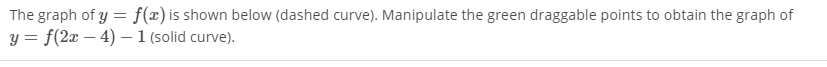So what we want to do in every question that is like this, we want to rewrite the transformed function in the format \( a*f(b(x-c))+d \) in this case, \( f(2x-4)-1 \), we need to factor out the 2 and rewrite like this: \( f(2(x-2))-1 \) We can determine that b = 2. c = 2, and d = -1 From here, we can graph the transformed function, We will horizontally compress the function by a factor of 2, shift the function 2 units to the right, (no vertical dilations because a= 1 in this case), and shift the function 1 unit down. Then graph this and you are done