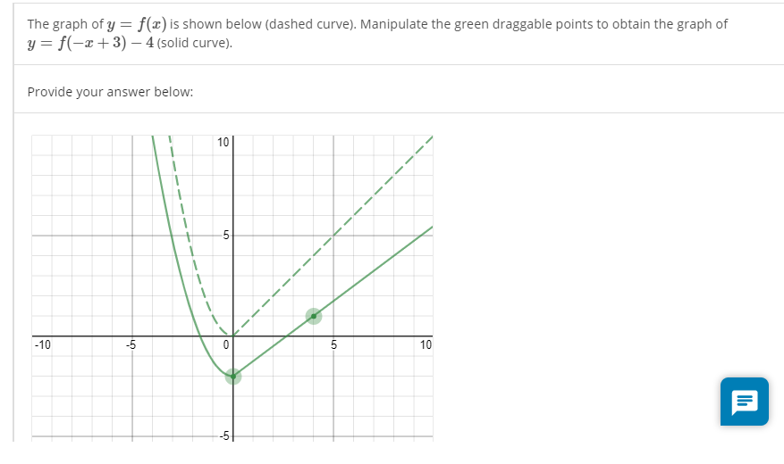 We need to rewrite \( y=f(-x+3)-4 \) in the format \( a*f(b(x-c))+d \) \( f(-x+3)-4 = f(-1(x-3))-4\) We can see that a=1 b = -1 c = 3 d = -4 When graphing this, b being negative means that we reflect f(x) about the y axis, so that (x, y) turns into (-x, y). After that we shift the function 3 units to the right, then 4 units down