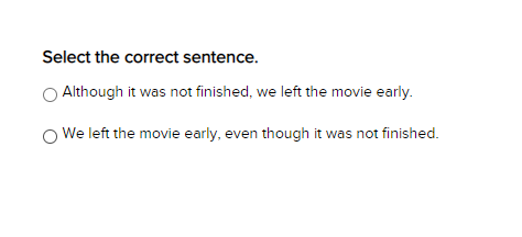 You would be incorrect, if you did answer A, the `subject` would come after the word describing it. Although `it` was not finished, we left the `movie` early. versus We left the `movie` early, even though `it` was not finished. There must be a `subject` to describe "it".