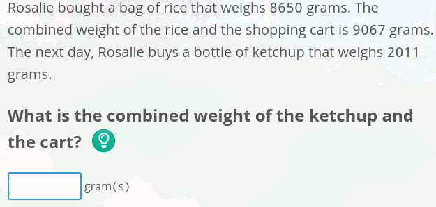 ((shopping cart + bag of rice) - bag of rice) + bottle of ketchup