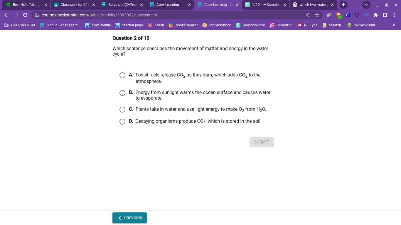 Answer: B (I think) Explanation: Energy in Earth's interior causes the solid rock to melt and form magma underground describes the movement of matter and energy in the rock cycle. The water cycle, also called the hydrological cycle, describes the flow of water on Earth.