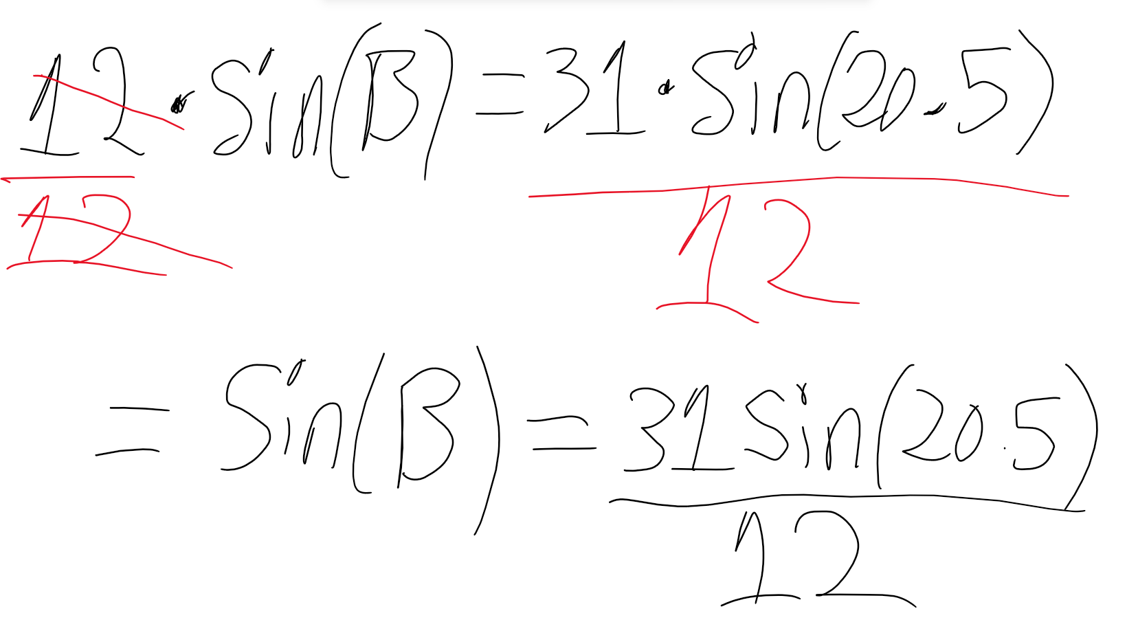 A = 12, B = 31, α (alpha) = 20.5 degrees