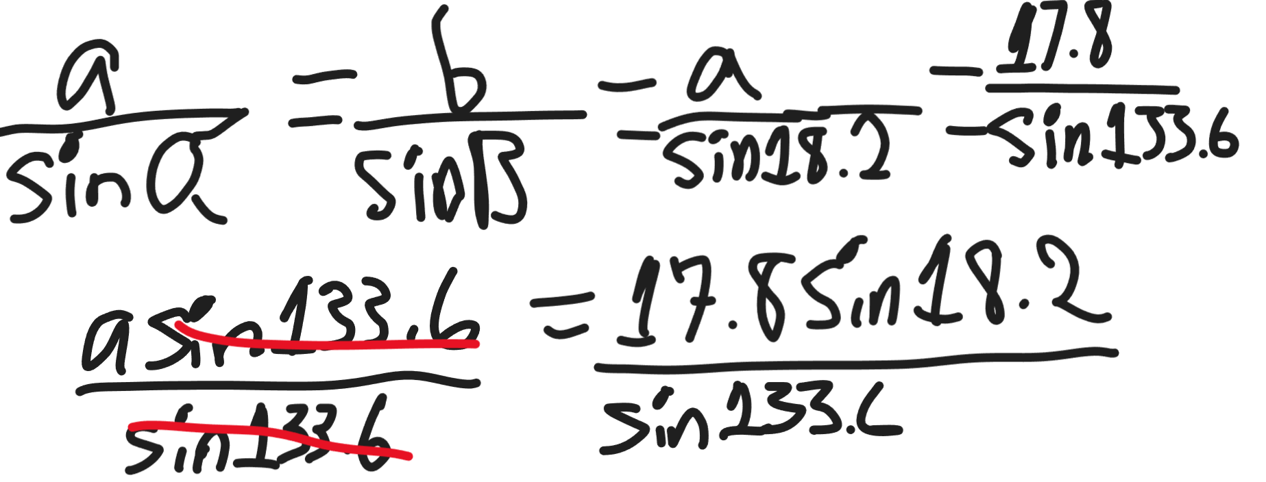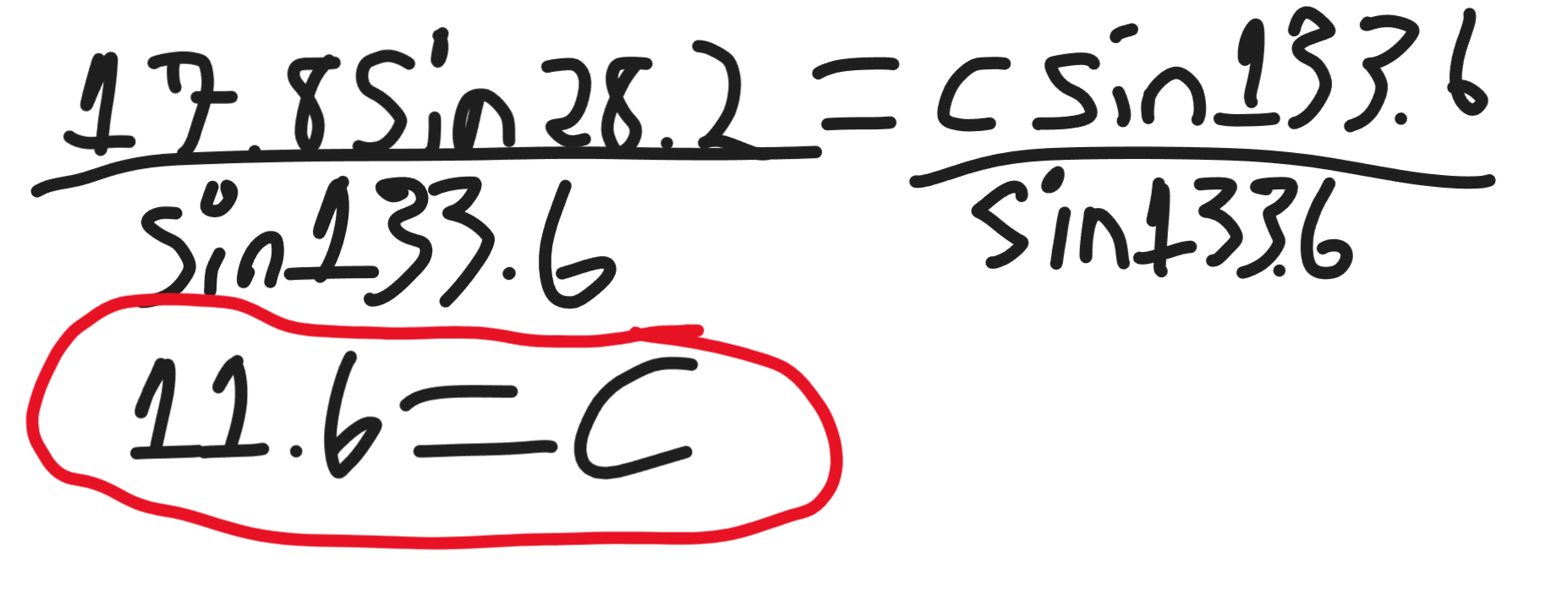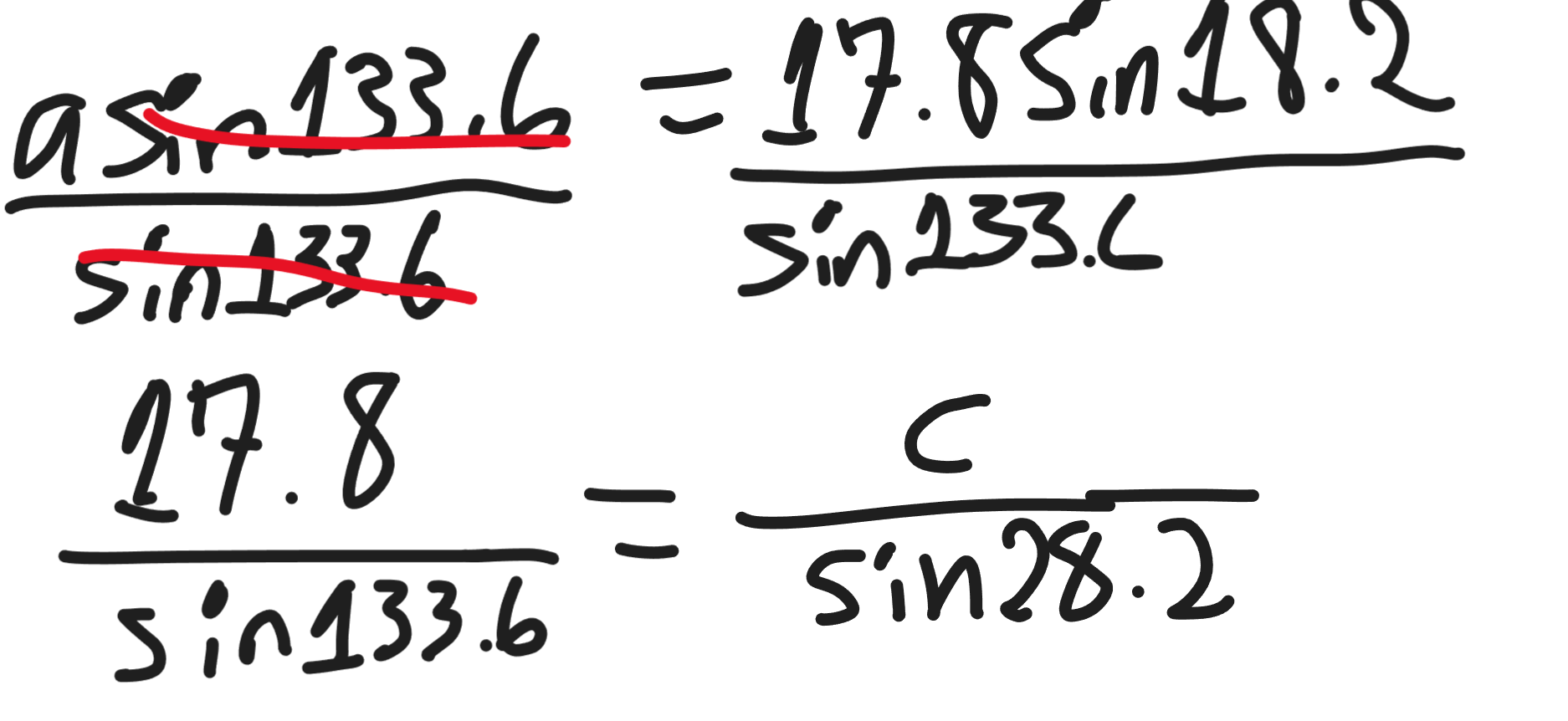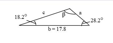 Angles: One angle is 18.2° Another angle is 28.2° Sides: One side (b) is 17.8 units long. What we need to find: The third angle (β) The lengths of the other two sides (a and c) Here's how we'll do it: Find the third angle (β): The angles in a triangle always add up to 180°. β = 180° - 18.2° - 28.2° = 133.6° Find side a and side c: Then, we gotta use the Law of Sines: a/sin(A) = b/sin(B) = c/sin(C) Finding side a: a / sin(18.2°) = 17.8 / sin(133.6°) a = (17.8 * sin(18.2°)) / sin(133.6°) ≈ 8.16 Finding side c: c / sin(28.2°) = 17.8 / sin(133.6°) c = (17.8 * sin(28.2°)) / sin(133.6°) ≈ 10.9 Solution: β = 133.6° a ≈ 8.16 c ≈ 10.9