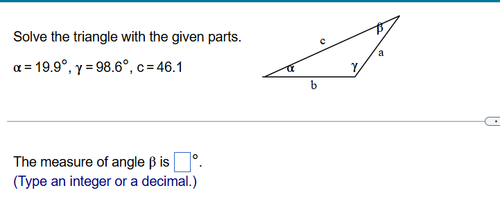 Solve the triangle with the given parts. Please don't respond until I'm done.