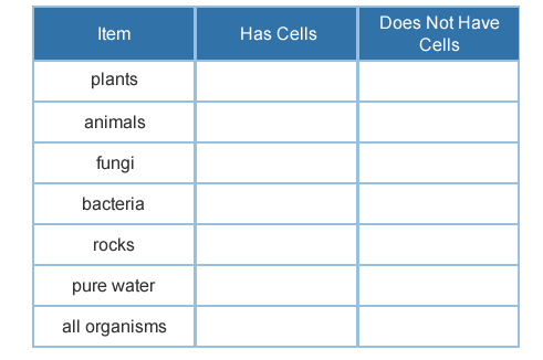 okay the living organisms have cells, but the non living dont like rocks and water dont have cells. bacteria have cells in them and plants and animals have cells as well.