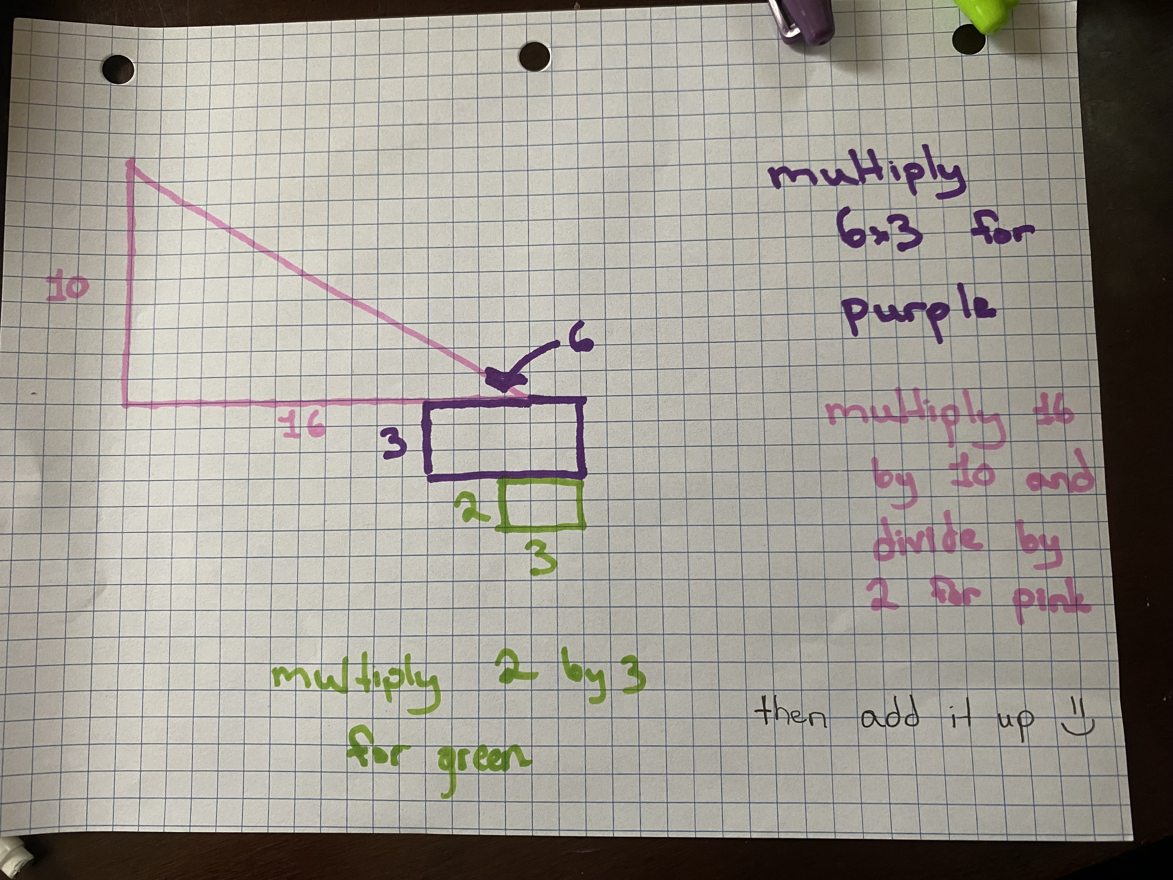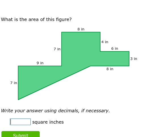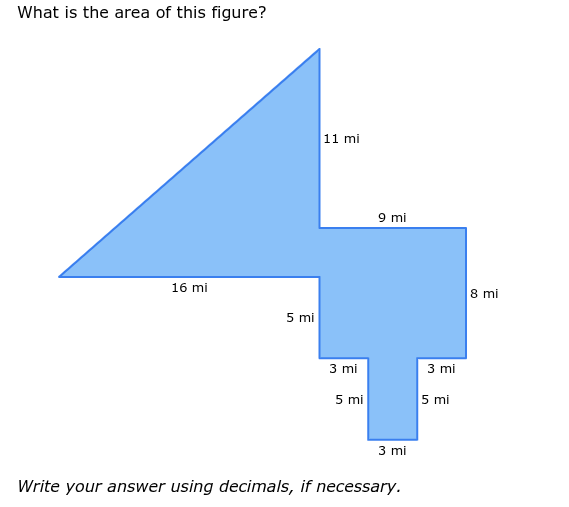 Ok so can you do what I did before? Break it up into more shapes. It can be broken into a triangle, and two rectangles.